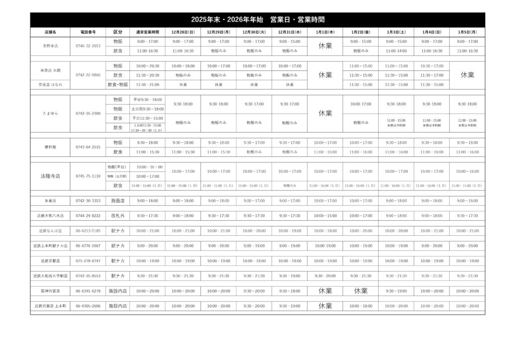 年末年始は、下記の通り時間を変更し営業させていただきます。